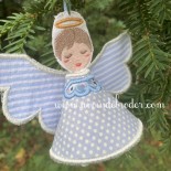 Ce motif est un motif "tout dans le cadre" ou ITH (in the hoop) et vous permettra de réaliser des petits anges pour votre décoration de Noël à suspendre. Vous pouvez les personnaliser avec un prénom. Ils peuvent aussi servir de marque-place pour une table de Noël ou à l'occasion d'un baptême.